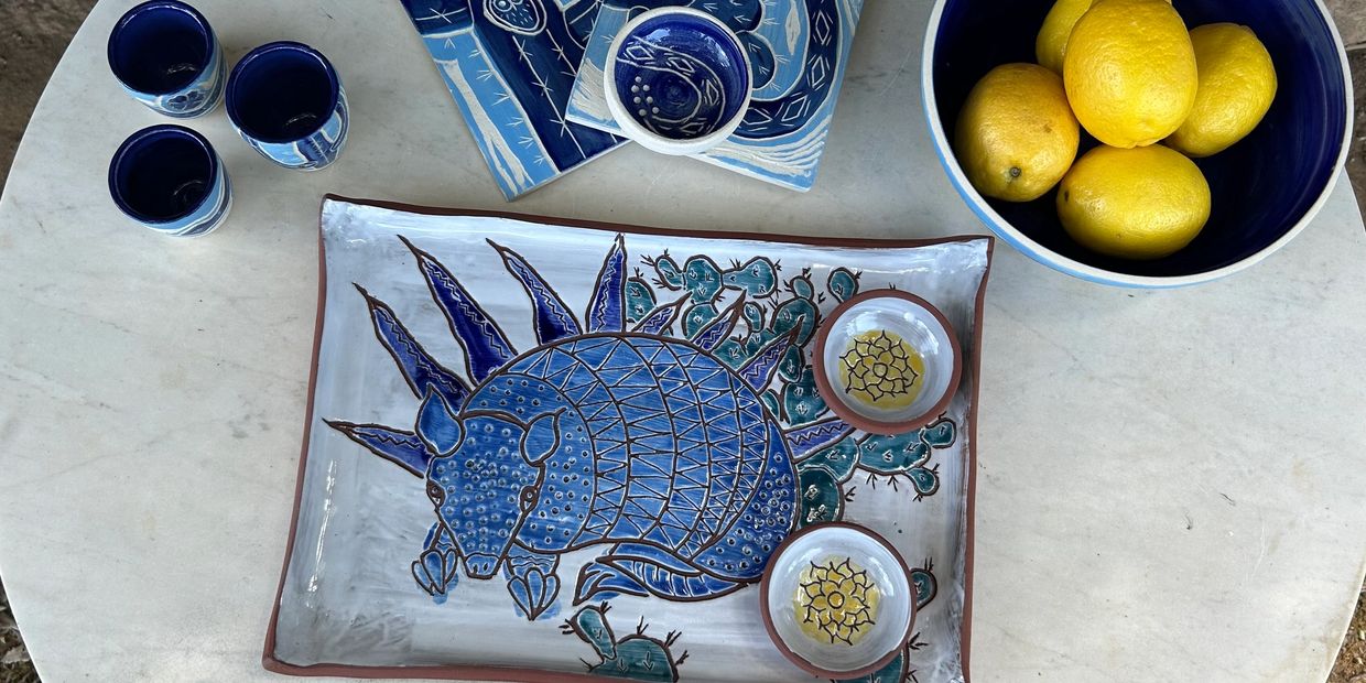 Together, we draw inspiration from the landscapes that shape us -from desert cacti and wildlife to coastal scenes and cloud-streaked skies. Every piece in the collection tells a story, blending nature, heritage, and a sense of wonder into pottery that feels at once personal and universal.
